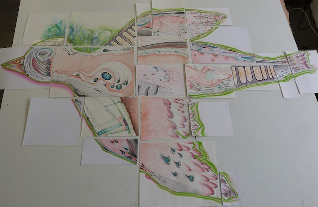 220cm x 200cm - dessin sur papier crayon, encre, aquarellec - 2024